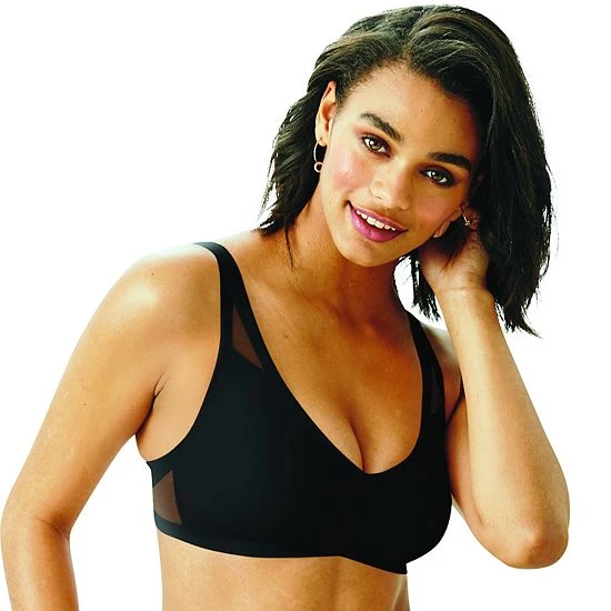 Featuring removable shaped foam cups for added support and mesh inserts for breathability and comfort, this v-neck bra from Hanes is sure to become a foundation favorite.