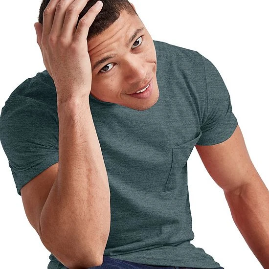 Alone or as a layering piece, this men’s Hanes pocket tee is always a solid choice.