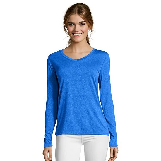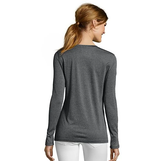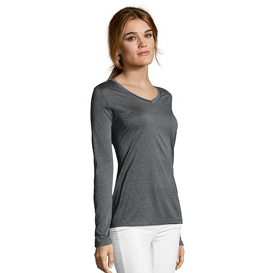 This women’s long sleeve performance v-neck tee from Hanes is the perfect addition to any active lifestyle wardrobe.